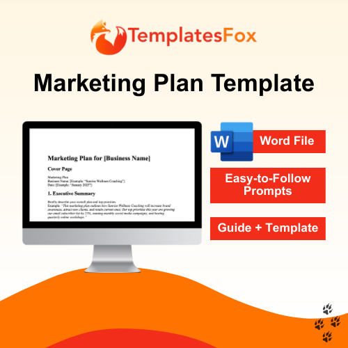 Take the guesswork out of planning your marketing with the Templates Fox Marketing Plan Template. Designed for small business owners and solopreneurs, this editable template provides a clear framework to organize your marketing goals, strategies, and action steps. It includes sections for market research, target audience, SMART goals, key performance indicators (KPIs), and budget tracking—so you can easily map out your entire marketing plan in one place.